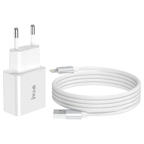 Cargador de viaje Ivon Ad-35 18W QC3.0 con puerto USB + cable USB A a 8 Pin 1M (Blanco)