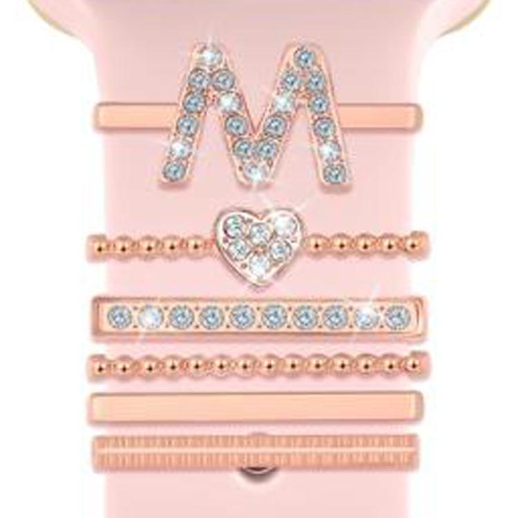 Juego de 6 correas de silicona universales para reloj inteligente, anillos decorativos de metal, talla M (oro rosa)