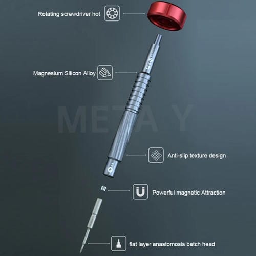 El destornillador magnético Mechanic Meta y Cross 1.2 es una herramienta especializada diseñada para la reparación precisa de Teléfonos Móviles. Fabricado con una aleación de aluminio de aviación, este destornillador combina ligereza y durabilidad, ofreciendo un mango ergonómico con textura antideslizante para un agarre cómodo y seguro durante el trabajo técnico. Su broca tridimensional extra dura proporciona un ajuste exacto y una fuerte adsorción magnética, facilitando la manipulación de pequeños tornillos en componentes delicados. Compatible con una amplia variedad de modelos de Teléfonos, esta herramienta está orientada a usuarios que realizan reparaciones por cuenta propia o profesionales del sector que requieren precisión y fiabilidad en sus intervenciones.