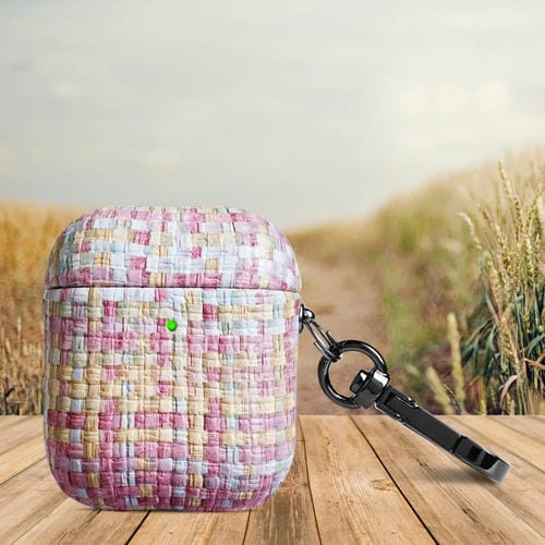 Estuche Protector para AirPods 1 y 2 Weave Texture PU A Prueba de Golpes con Gancho (Rosa)