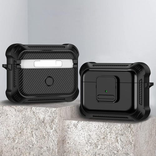 Funda Protectora para Auriculares Airpods Pro 2 TPU + PC A Prueba de Golpes con Interruptor (Negro)