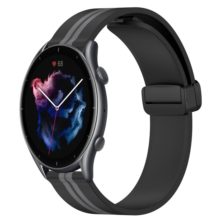 Correa de Reloj 22mm para Amazfit GTR 3 Silicona con Cierre Magnético Plegable (Negro + Gris)