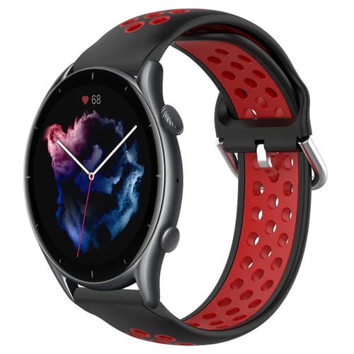 Correa de Reloj Amazfit GTR 3 22mm silicona deportiva transpirable perforada (Negro + Rojo)