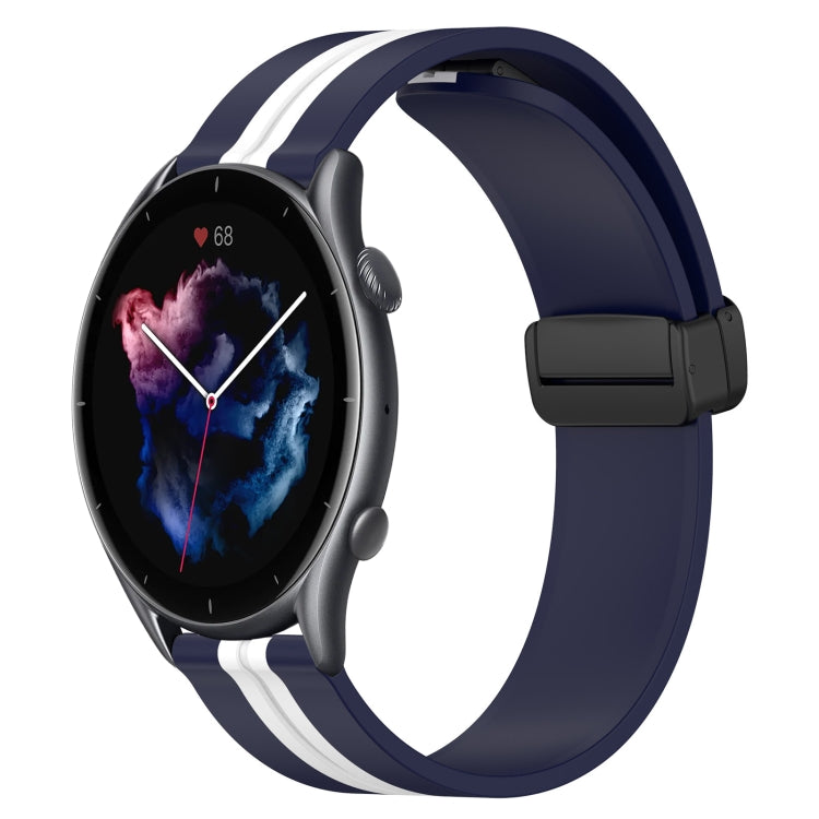 Correa de Silicona para Amazfit GTR 3 Pro 22mm con Cierre Magnético Plegable (Azul Medianoche + Blanco)