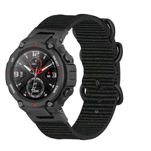 Correa de Reloj Nailon para Amazfit T-Rex T-Rex Pro Ares con Hebilla Negra de Tres Anillos (Negro)