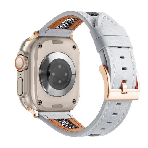 Correa de Reloj para Apple Watch Ultra 49mm Cuero Genuino Piel de Becerro Malla (Blanco)