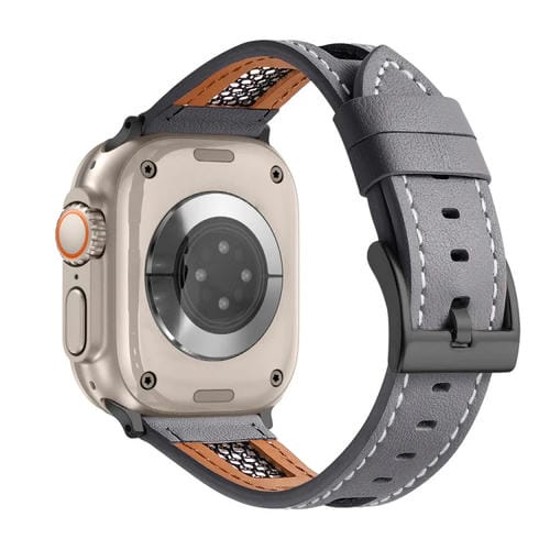 Correa de Cuero Genuino para Apple Watch Ultra 49mm de Piel de Becerro Malla (Gris)