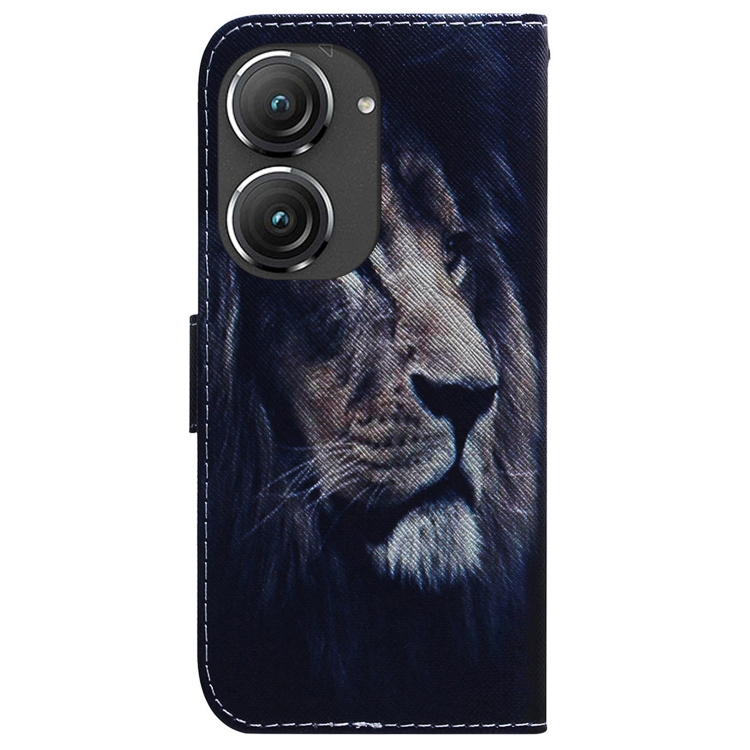 Estuche de Cuero para Asus Zenfone 9 con Dibujo Coloreado León