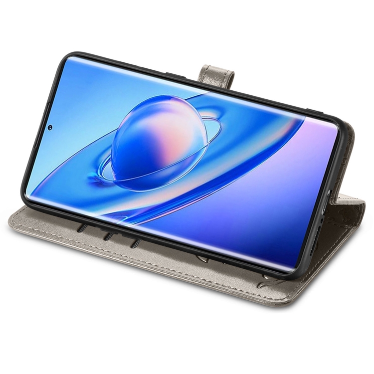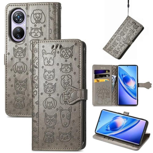 Funda de Cuero para BlackView A200 Pro con Relieve Perros y Gatos (Gris)