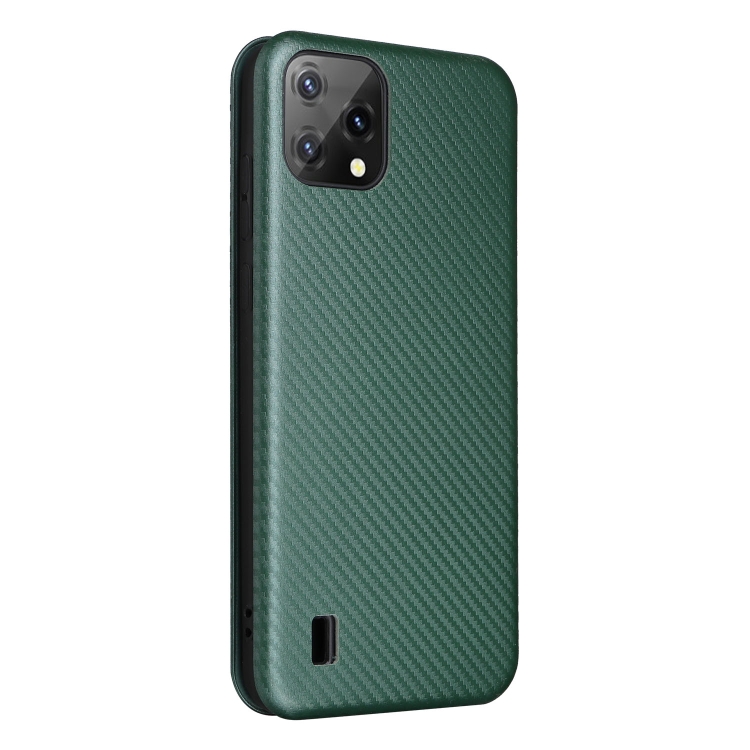 Funda Telefónica BlackView A55 Fibra de Carbono Textura Magnético Horizontal Flip (Verde)