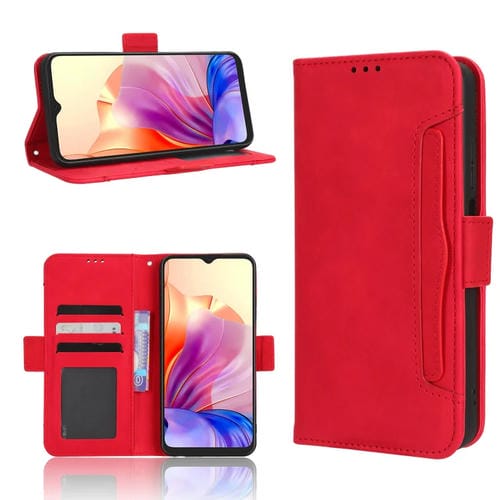 Funda de Cuero para BlackView Oscal C80 con Ranuras para Tarjetas y Textura Becerro (Rojo)