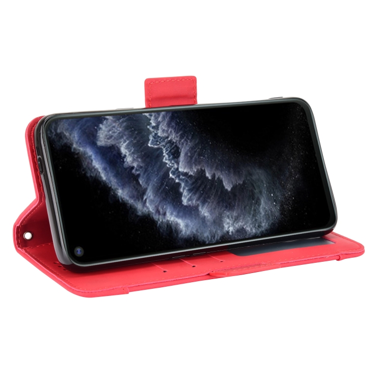 Funda Cuero Horizontal Flip Cubot C30 con Soporte, Ranuras y Marco Fotos (Rojo)