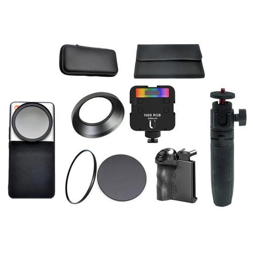 Juego 10 en 1: estuche para teléfono, caja de almacenamiento, CPL, negro suave 1/4+1/8, blanco suave, mango de zoom, trípode, luz de relleno, UV, bolsa de almacenamiento con filtro a prueba de polvo