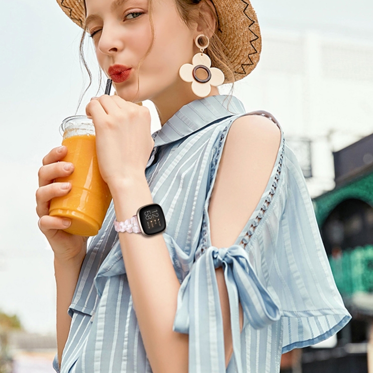 Correa de Reloj para Fitbit Versa 4 y Sense 2 de Resina Rombo Universal (Flor Rosa)