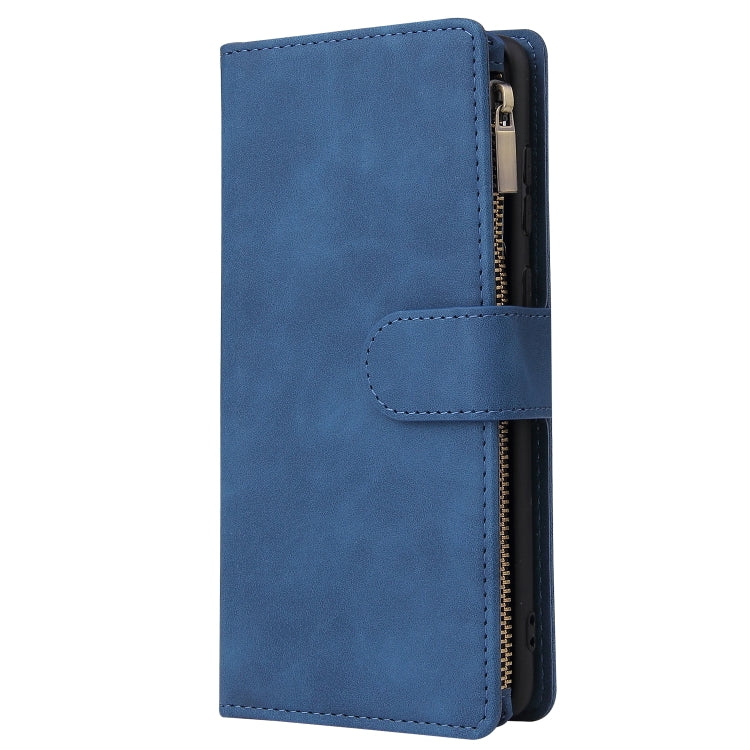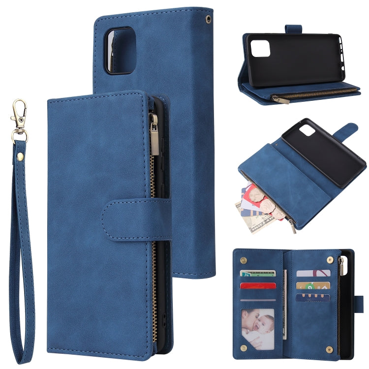 Estuche de Cuero para Galaxy Note10 Lite con Tapa Horizontal Multifuncional, Ranura para Tarjeta, Soporte, Billetera con Cremallera y Marco de Fotos (Azul)