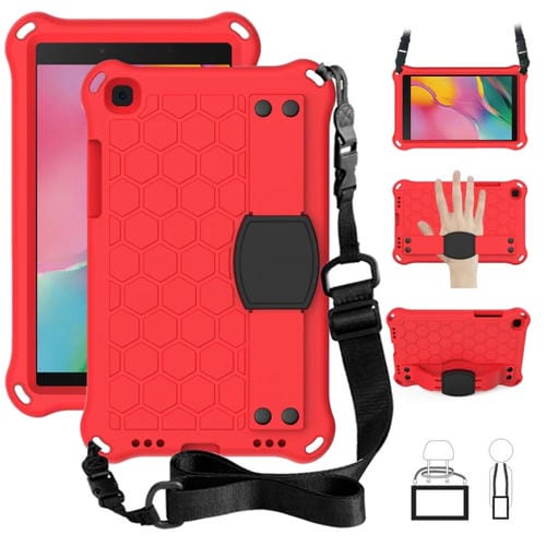 Carcasa Protectora para Galaxy Tab A8.0 T290 / T295 (2019) Diseño Panal Eva + Pc Anticaída Cuatro Esquinas con Correas (Rojo + Negro)