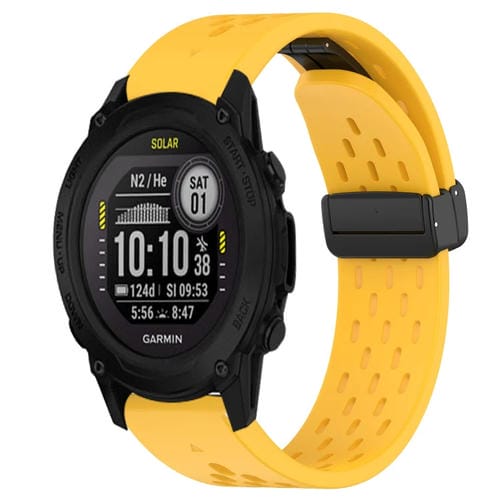 Correa de Reloj silicona Garmin Descent G1 Solar con orificio hebilla plegable 22mm (Amarillo)