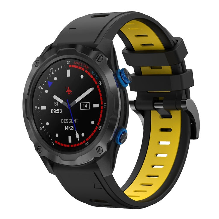 Banda de Reloj de Silicona Deportiva para Garmin Descent Mk 2I 26mm (Negro + Amarillo)