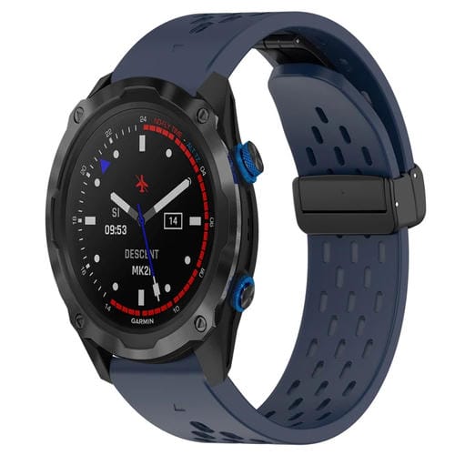 Correa de Silicona para Garmin Descent Mk 2I con Orificio y Hebilla Plegable 26mm (Azul Medianoche)