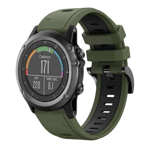 Banda de Reloj silicona deportiva Garmin Fenix 3 Hr 26mm dos colores (Verde Militar + Negro)