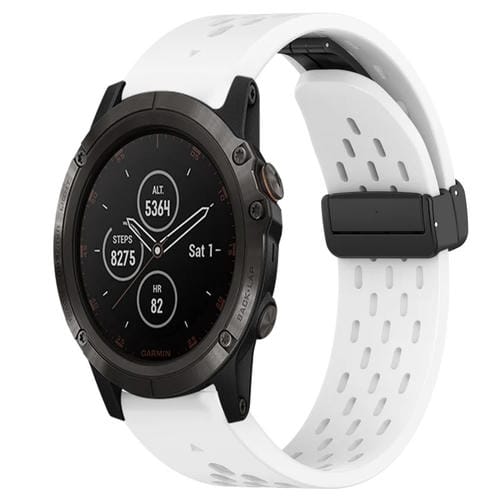 Correa de Silicona para Garmin Fenix 5X Plus con Orificio y Hebilla Plegable 26mm (Blanco)