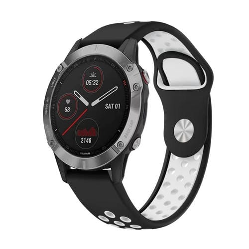 Banda de Reloj de Silicona para Garmin Fenix 6 GPS 22mm Sports (Negro + Blanco)