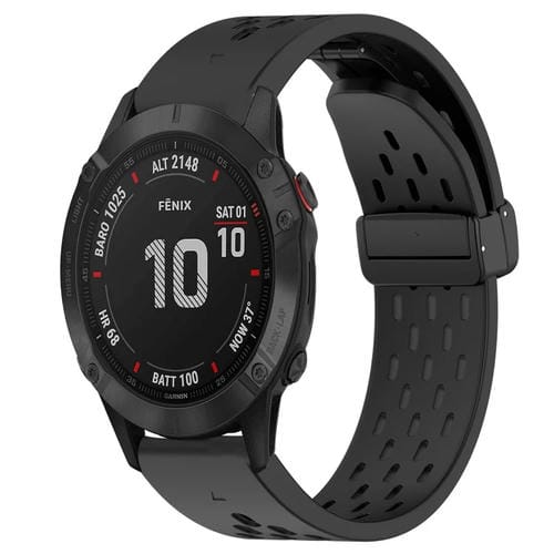 Correa de Silicona para Garmin Fenix 6 GPS con Orificio para Hebilla Plegable 22mm (Negro)