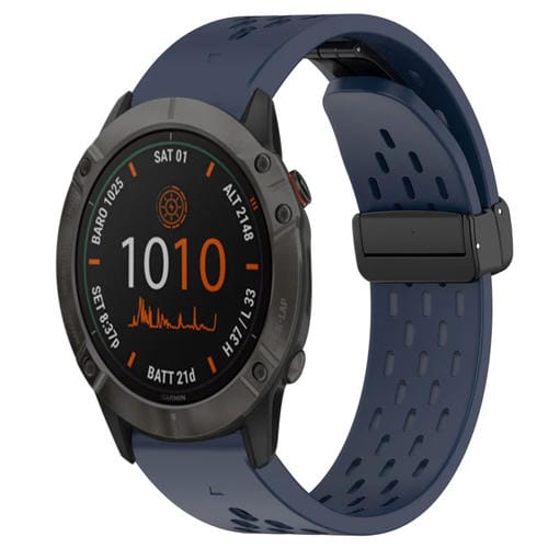 Correa de Silicona para Garmin Fenix 6X 26mm con Orificio y Hebilla Plegable (Azul Medianoche)