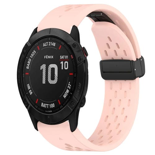 Correa de Silicona para Garmin Fenix 6X Sapphire 26mm con Orificio para Hebilla Plegable (Rosa)