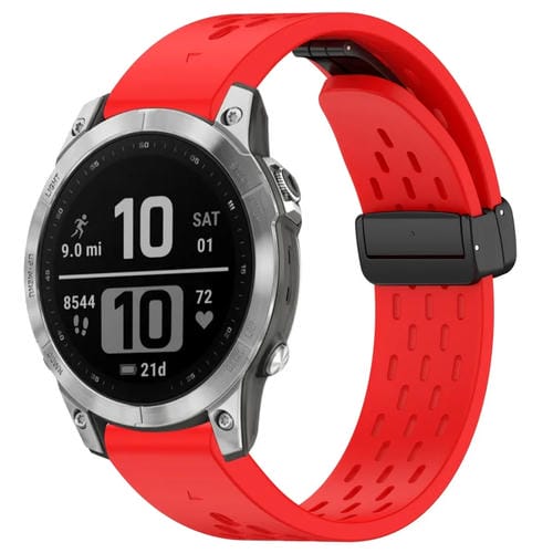 Correa de Silicona para Garmin Fenix 7 y Fenix 7 Pro con Hebilla Plegable Magnética y Orificios 22mm (Rojo)