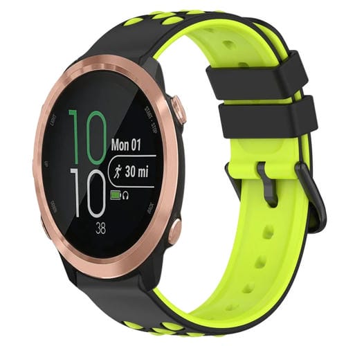 Banda de Reloj Garmin Forerunner 645 Music 20mm Silicona Porosa Dos Colores (Negro + Verde Lima)
