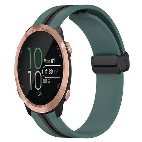 Correa de Silicona para Garmin Forerunner 645 Music 20mm con Cierre Magnético Plegable (Verde Oliva + Negro)