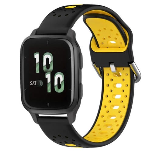 Banda de Reloj de Silicona para Garmin Forerunner Sq2 20mm Transpirable Dos Colores (Negro + Amarillo)