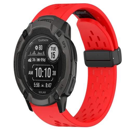 Correa de Silicona para Garmin Instinct 2X Solar 26mm con Orificio y Hebilla Plegable (Rojo)