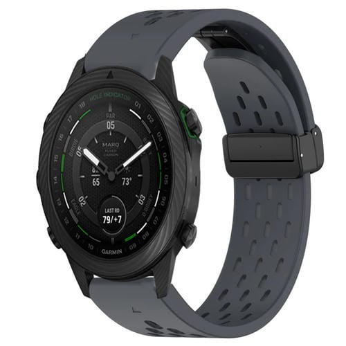 Para Garmin Marq Golfer Correa de Reloj de Silicona con Orificio y Hebilla Plegable de 22mm (Gris Oscuro)