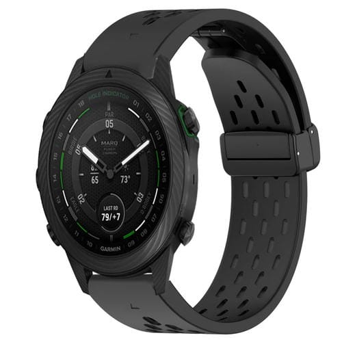 Correa de Reloj para Garmin Marq Golfer de silicona con orificio y hebilla plegable 22mm (Negro)