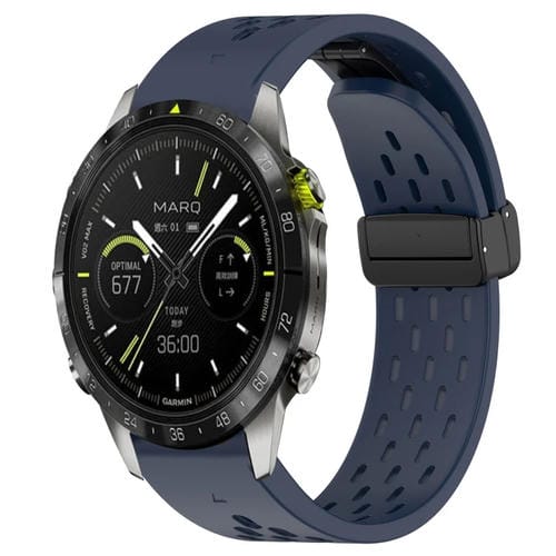 Correa de Silicona para Garmin Marq con Orificios y Hebilla Magnética (Azul Oscuro)