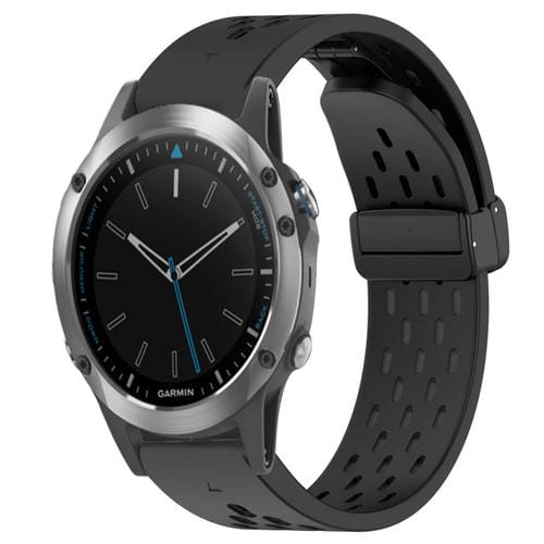 Correa de Silicona para Garmin Quatix 5 con Orificio y Hebilla Plegable 22mm (Negro)