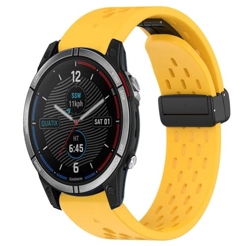 Correa de Reloj Silicona Garmin Quatix 7 con Orificio y Hebilla Plegable 22mm (Amarillo)
