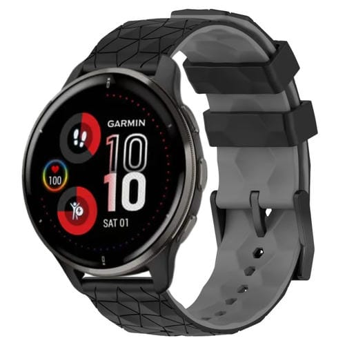 Banda de Reloj Garmin Venu 2 Plus 20mm Silicona Patrón de Fútbol (Negro + Gris)