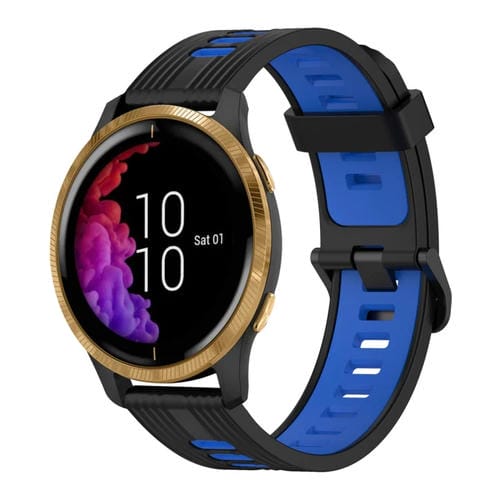 Banda de Reloj para Garmin Venu Patrón Vertical 20mm silicona dos colores (Negro+Azul)