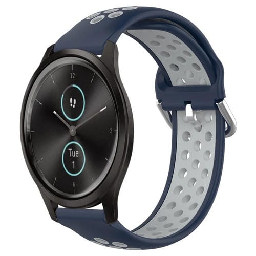 Banda de Reloj para Garmin Vivomove Style 20mm Silicona Deportiva Transpirable Perforada (Azul Medianoche + Gris)
