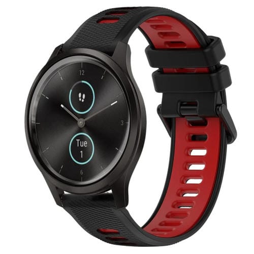 Correa silicona deportiva 20mm para Garmin Vivomove Style (Negro + Rojo)