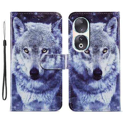 Funda para Honor 90 de Cuero con Tapa Horizontal y Patrón Pintado (Lobo Blanco)