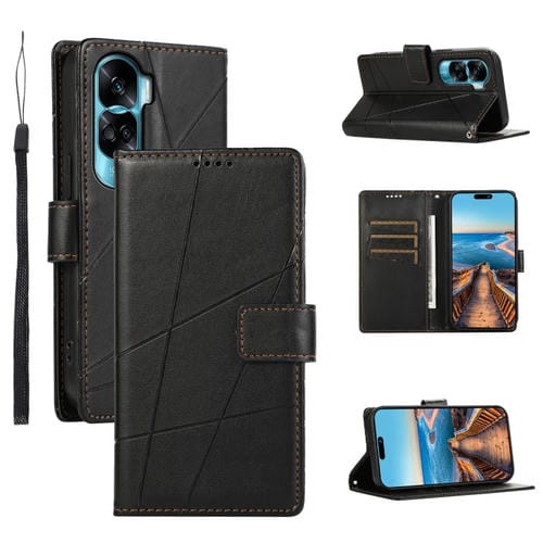 Funda para Honor 90 Lite con Línea en Relieve y Textura de Cuero Genuino PU (Negro)