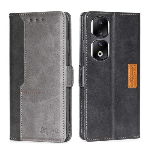 Caja de Teléfono de Cuero para Honor 90 Pro 5G con Hebilla Lateral y Color de Contraste (Negro + Gris)