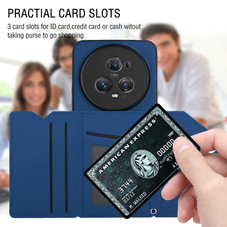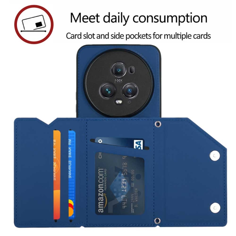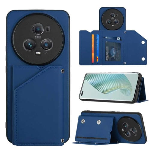 Funda para Honor Magic5 Pro Skin Feel PU + TPU con Ranuras para Tarjetas para Teléfono (Azul Real)