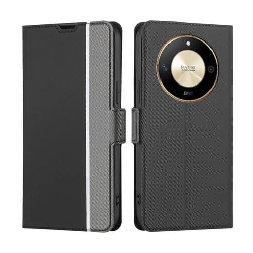 Funda de Cuero para Honor X50 5G con Botón Lateral y Textura de Sarga (Negro)