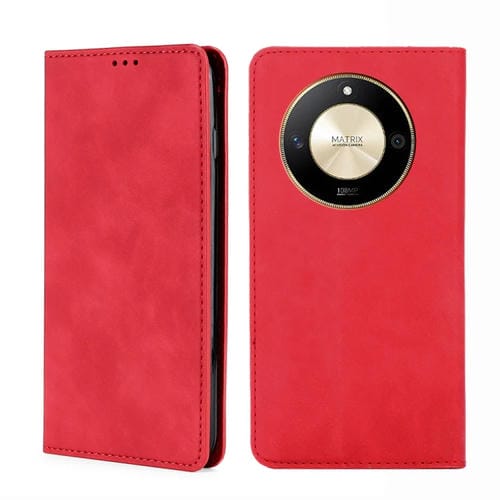 Funda de Cuero Magnética para Honor X50 5G Skin Feel (Rojo)