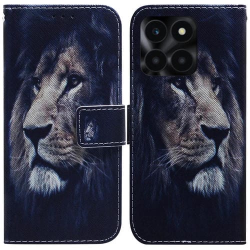 Funda de Cuero para Honor X6A con Tapa y Dibujo Coloreado (León)